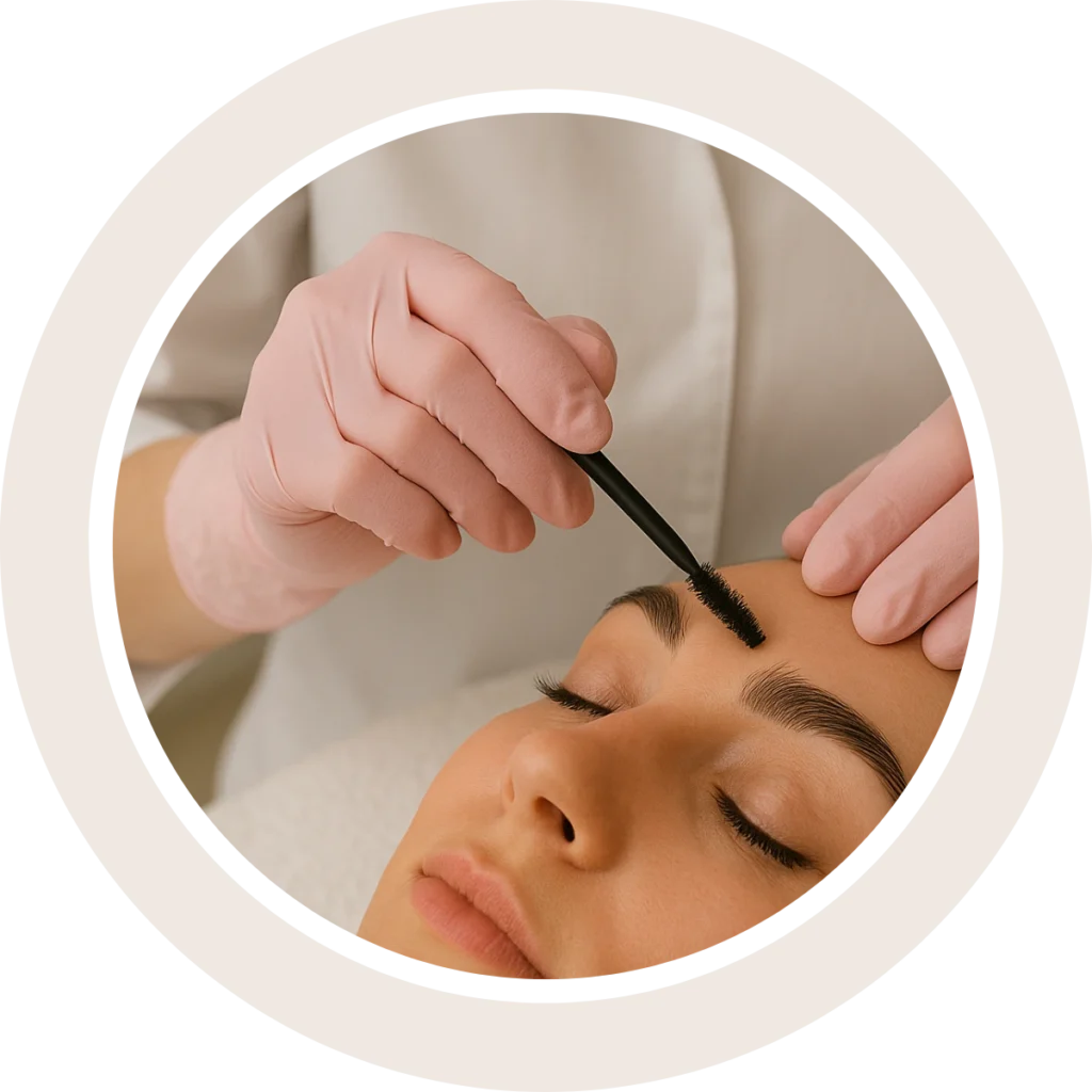 Stylizacja okolicy oka to zestaw precyzyjnych zabiegów podkreślających naturalne piękno spojrzenia. Może obejmować regulację i koloryzację brwi, lifting i laminację rzęs oraz hennę klasyczną lub pudrową. Każdy etap dopasowany jest indywidualnie do rysów twarzy, dzięki czemu efekt jest naturalny i harmonijny.